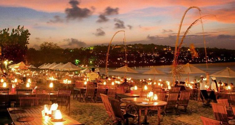 Một trong những trải nghiệm đáng nhớ tại Bali là thưởng thức ẩm thực địa phương bên bờ biển, đặc biệt tại khu vực Jimbaran. Khi hoàng hôn buông xuống, không gian biển trở nên lãng mạn, kết hợp cùng hải sản tươi ngon tạo nên một bữa tối mang đậm tinh thần nghỉ dưỡng nhiệt đới.