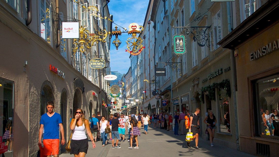 - Phố mua sắm Getreidegasse: Là phố mua sắm nổi tiếng nhất của Salzburg, Getreidegasse nằm trong khu phố cổ. Khu phố tập chung nhiều cửa hàng bán đồ trang sức, trang phục truyền thống, các món ăn đặc sản của thành phố…