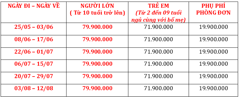 MỌI CHI TIẾT XIN VUI LÒNG LIÊN HỆ PHÒNG ĐIỀU HÀNH TOUR: