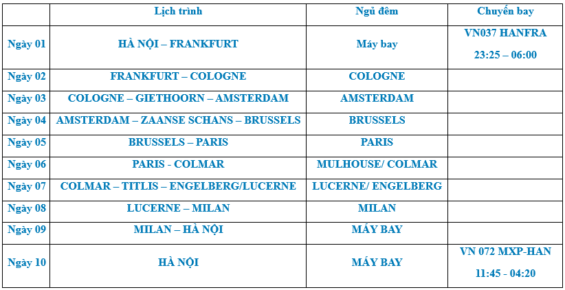 ĐỨC - HÀ LAN - BỈ - PHÁP - THỤY SĨ - Ý 10N9Đ| 2026