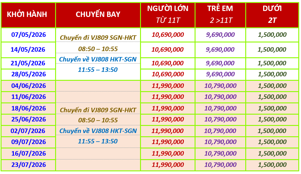 Do tính chất là đoàn ghép khách lẻ, công ty du lịch sẽ có trách nhiệm nhận khách cho đủ đoàn (15 khách người lớn trở lên) thì đoàn sẽ khởi hành đúng lịch trình. Nếu số lượng đoàn dưới 15 khách, Công Ty sẽ có trách nhiệm thông báo cho khách trước ngày khởi hành 4 ngày và sẽ thỏa thuận lại ngày khởi hành mới, hoặc hoàn trả lại toàn bộ số tiền khách đã đăng ký trước đó.