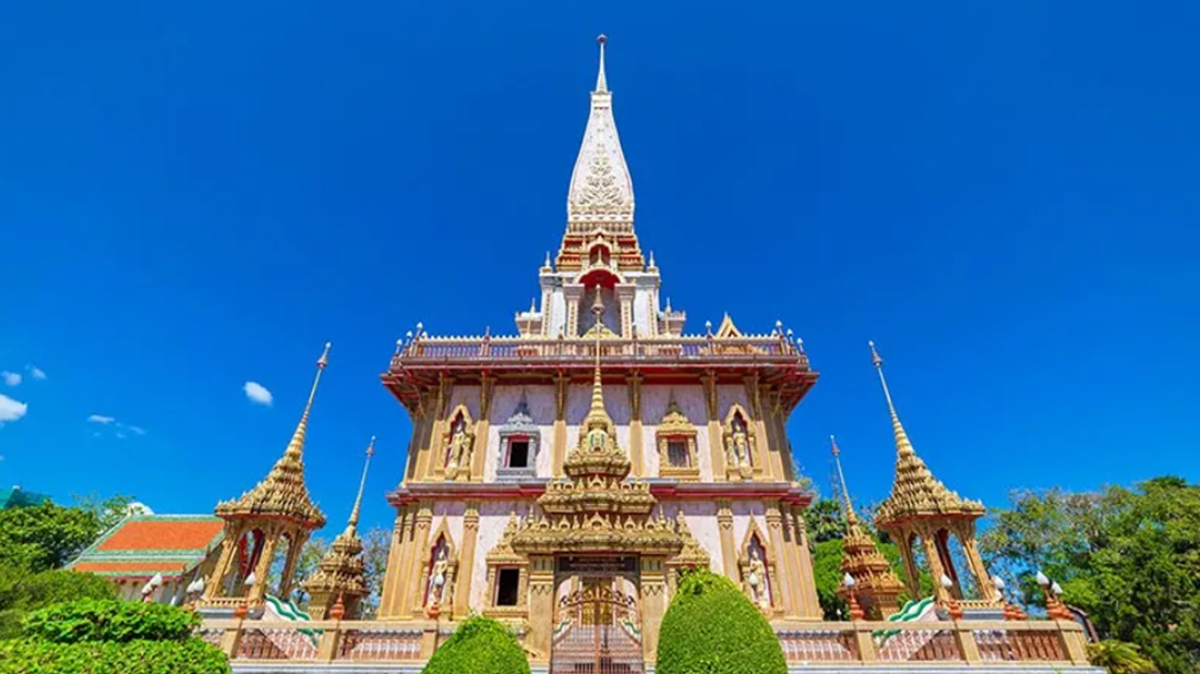 Đền Chalong – ngôi đền là một biểu tượng Phật giáo không thể thiếu khi đến với Phuket. Tại đây có bày bán các sợi dây cầu may được chính các vị sư trong chùa làm phép để mang lại sự bình an cho gia chủ.