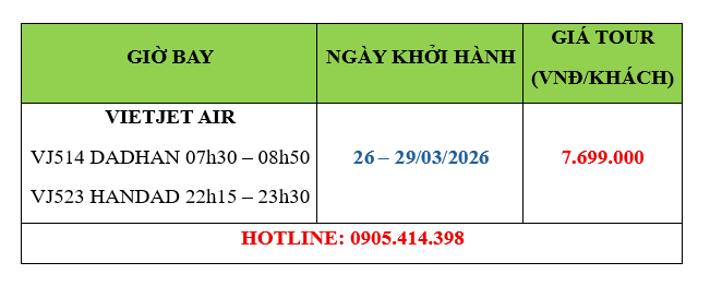 MỌI CHI TIẾT XIN VUI LÒNG LIÊN HỆ PHÒNG ĐIỀU HÀNH TOUR: