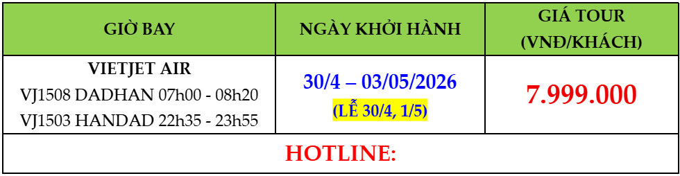 ĐÀ NẴNG – HÀ GIANG - CAO BẰNG 4N3Đ 30/4/2026