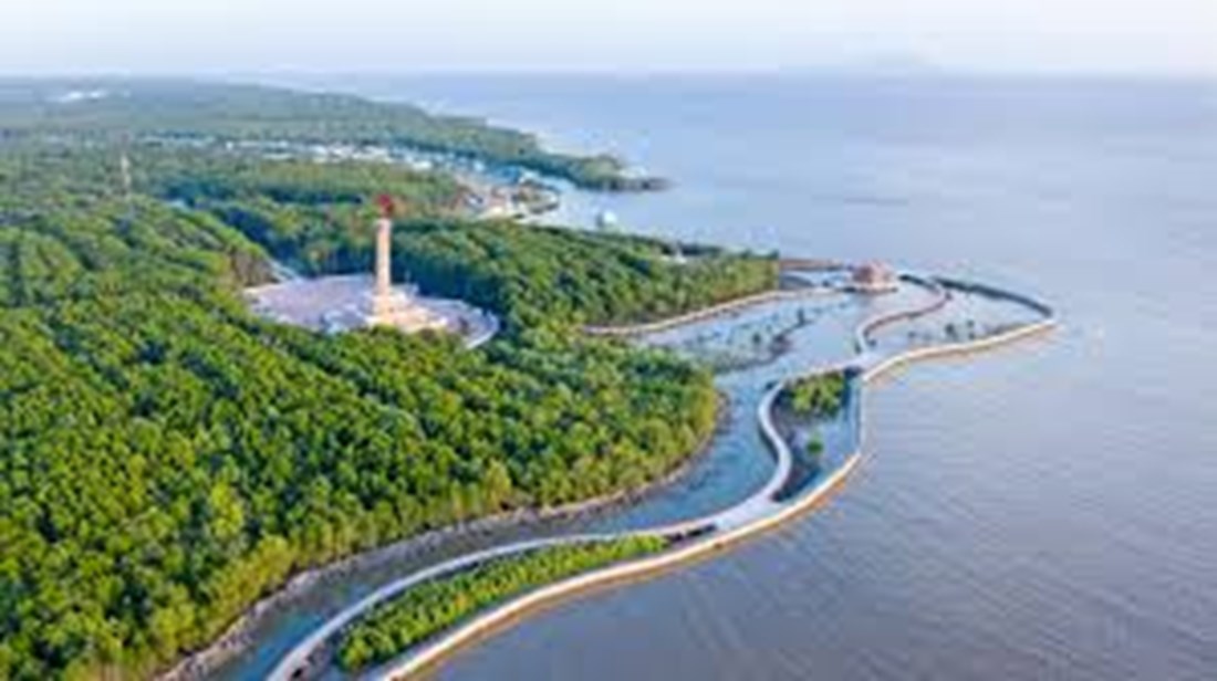 Check-in biểu tượng Mũi Cà Mau hình con tàu vươn ra biển lớn.