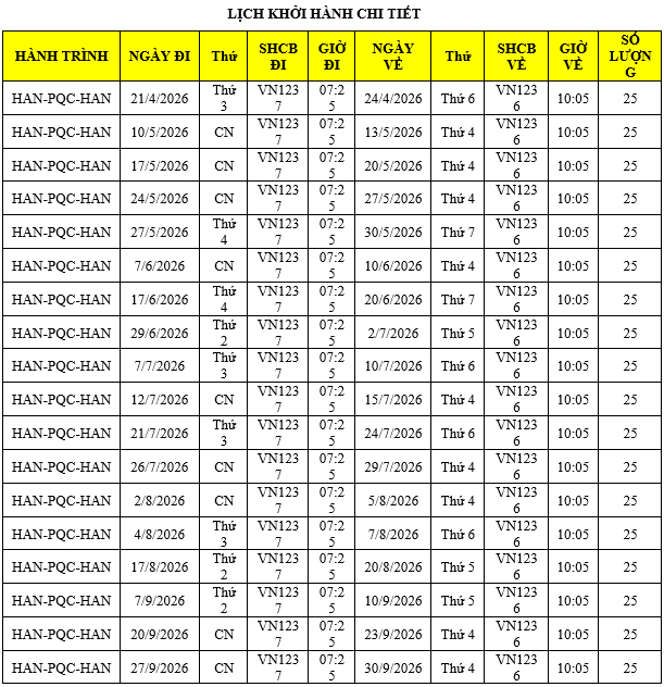 - Giờ bay có thể thay đổi theo giờ bay của Hãng Hàng Không VietNam Airlines.